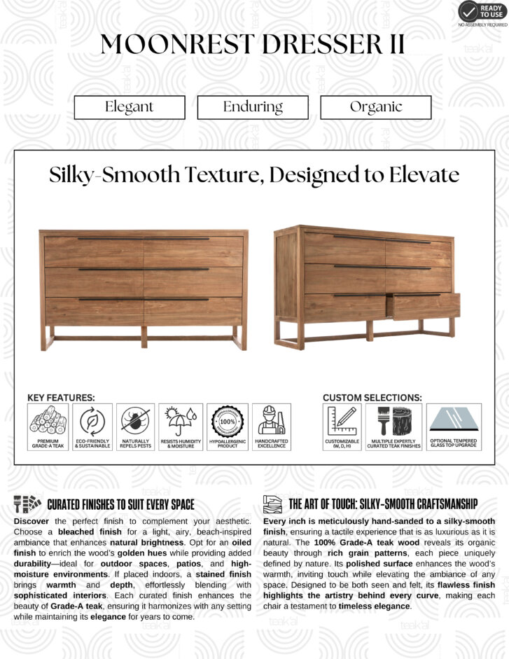 Moonrest Dresser II – Teak Dresser with Six Drawer Elegance